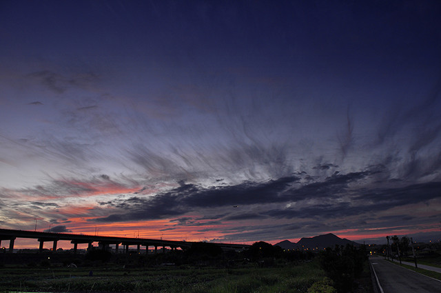 果真有兩台飛機拖曳著一長條的彩筆在藍天畫布上作畫。