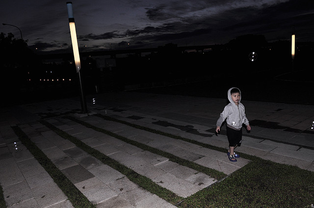 後來你追著泡泡跑到草皮上,滑倒⋯⋯一臉不爽。