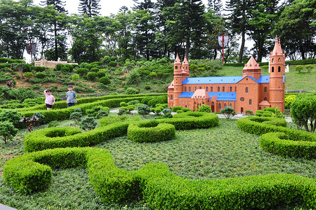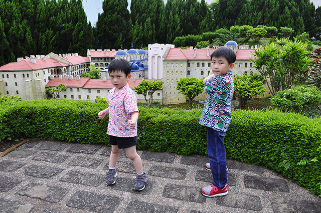 一路上姊姊吵著要去坐火車直接去遊樂園,說這些小建築太無趣了。