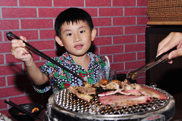 叔叔、姑姑很認真的烤著,我努力的吃。