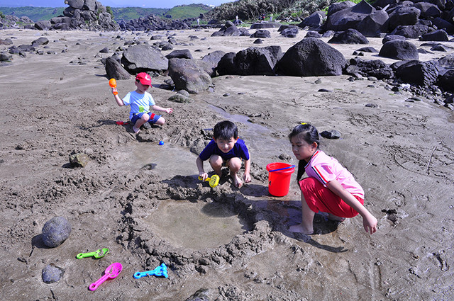 叔叔:就這嘍~這裡有沙有石頭再下去點可以撿寄居蟹⋯⋯