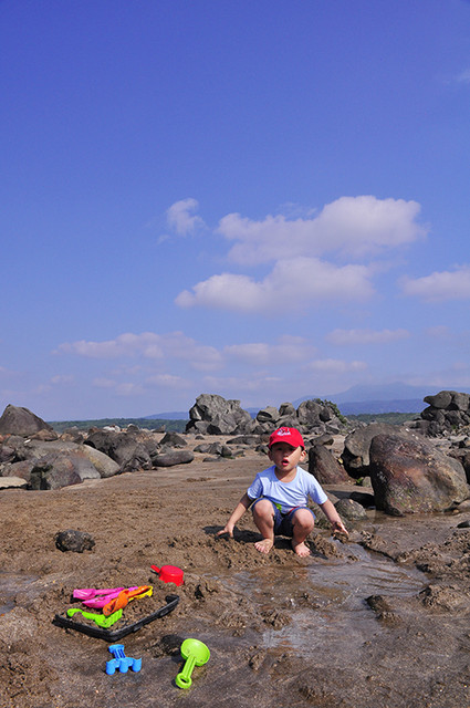 完全不想理我,我下去陪你玩沙子你也不太理我。唉~我只能在周圍繞來繞去⋯⋯