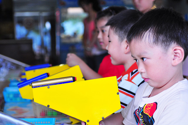 而且打氣的也不夠力,那槍是懸空的,晃來晃去的你想打到真的很難。不過開心就好嘍~