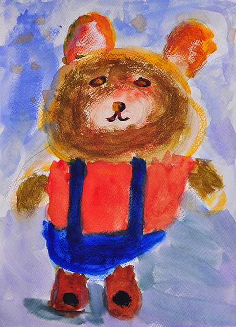 小雞哥哥畫的熊熊,看得出與姐姐都有共通點就是吊帶褲。