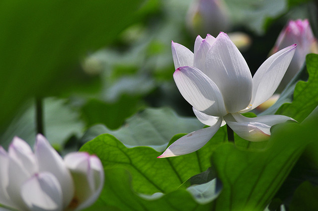 有粉紅的、白的;盛開的、花苞的、大的、小的.⋯⋯好多好多的荷花。