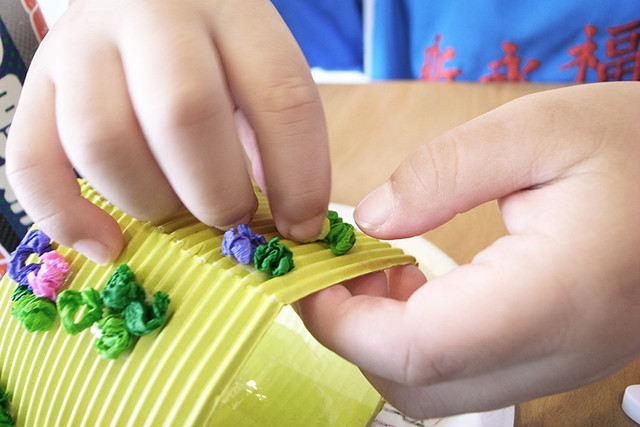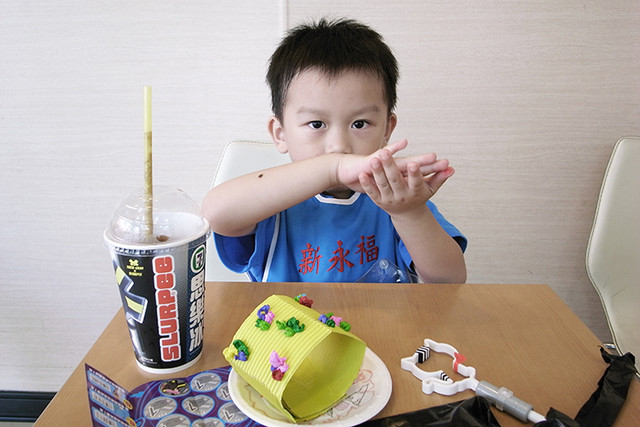 懋:爸爸~我教你做蛋糕,首先把小紙揉一揉。