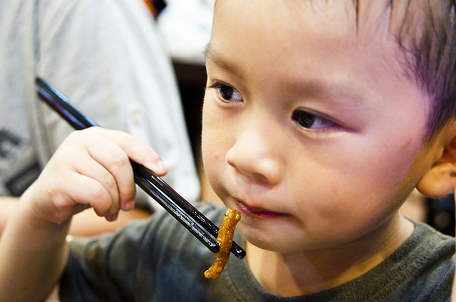 懋:我來嚐嚐這客家小炒的味道。