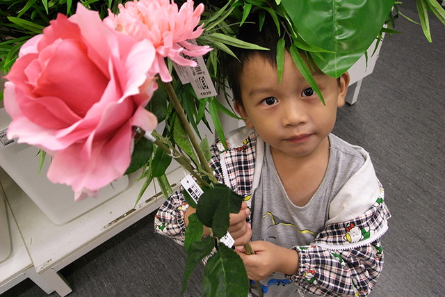 拿起花對我說:我要拿去送媽媽,這樣她就不會生氣。