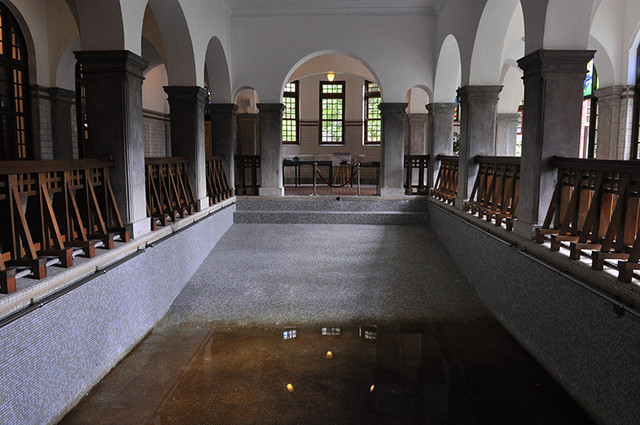原建於1913年6月17日,佔地約700坪,是兩層樓仿英式磚造建築,為當時最大的公共溫泉浴場。