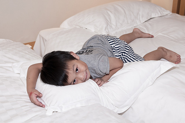 不意外的,小孩子對床鋪總是非常的迷戀。當門房一開,你衝進去就往床鋪上跳。