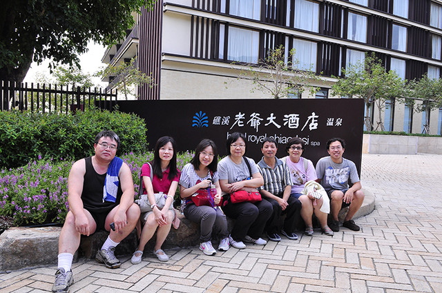 在飯店門口做了熱身操之後,跟著解說員往山上走。