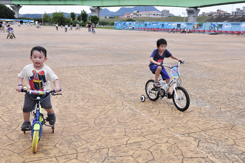 你媽提著腳踏車到提防邊,你騎一下子就跟叔叔說:叔叔,我也要租大台的。