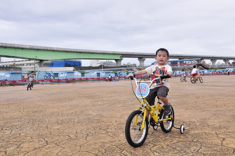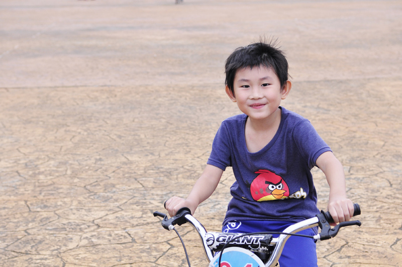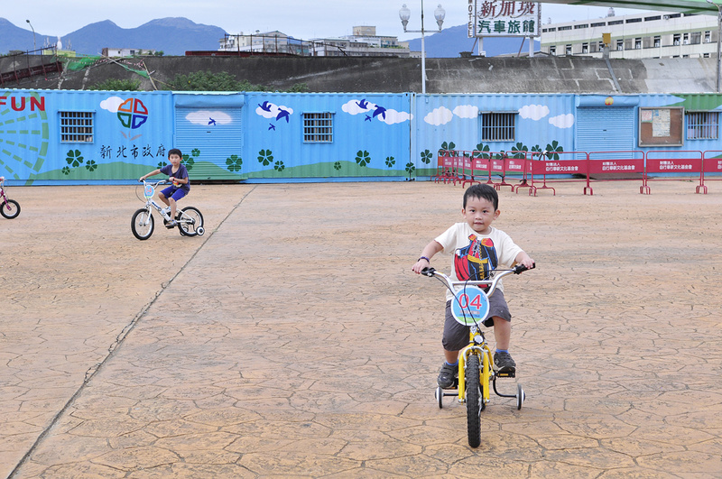 她很認真的在學習騎單車,後面輔助輪拆掉後讓她搖搖晃晃的。