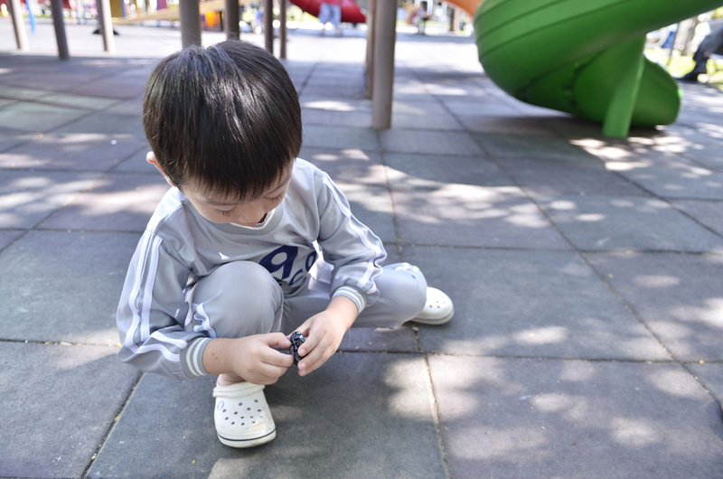 這假日的早晨,我們特地帶出戰鬥陀螺,準備與公園內的哥哥一起玩。