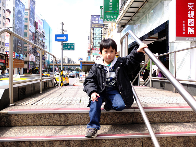 我們在忠孝東路上有碰到街頭藝人,認真的吹著樂器。