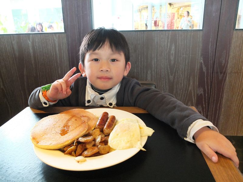 噹噹~總算是來嘍~我點了你最愛的熱狗,還有蛋蛋。鬆餅我們一人一片。