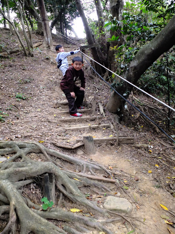 停好車後,每個人以為石階上就是步道。於是不停的往上,那石階似乎是走不完。