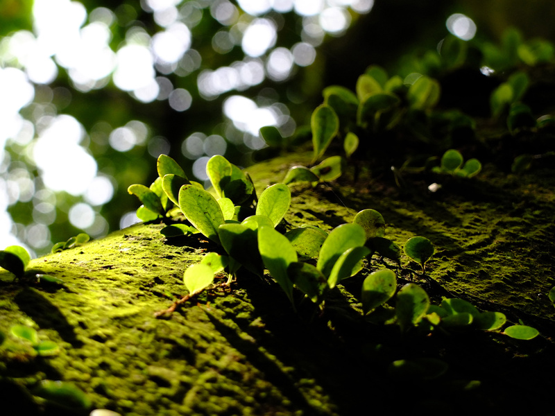 陽光落在嫩葉上頭,乍看之下像群小朋友拿著鏡子折射陽光在戲弄著你。