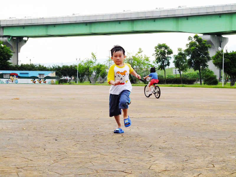 於是我們輪流在後頭扶著你,好讓你搖搖晃晃的身體可以保持平衡。