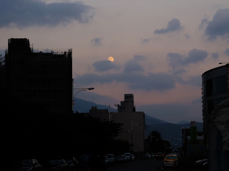 下公車再走一段路,頭上的月亮頗大。有沒有月亮沒多大影響,不下雨就好。