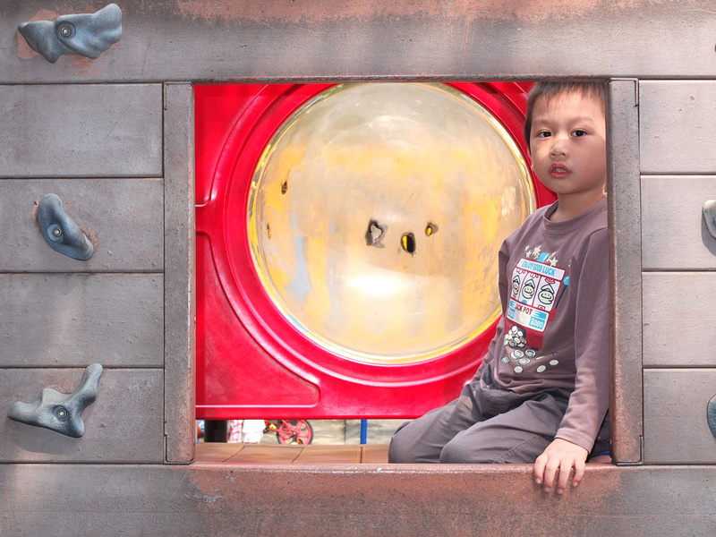 想當初,要上來這平台可是得靠我抱你上來。現在三兩下你就自己爬上來~