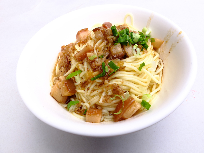 你自己點的乾麵,上頭滿是白肉。我不敢吃!