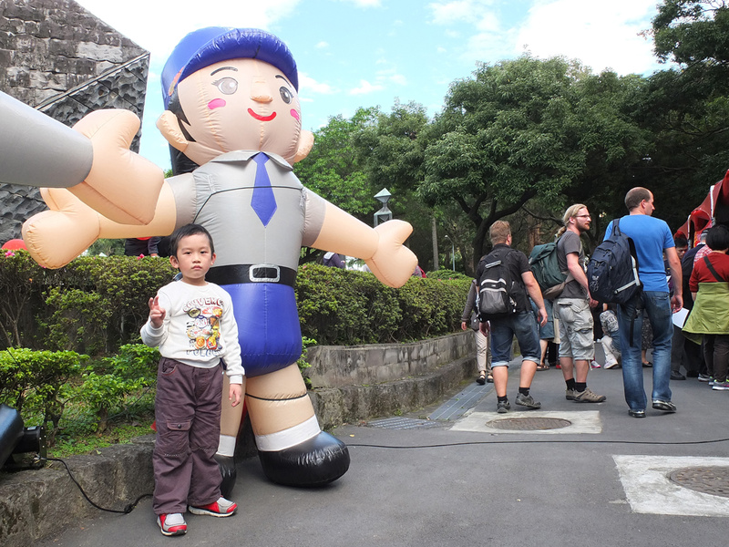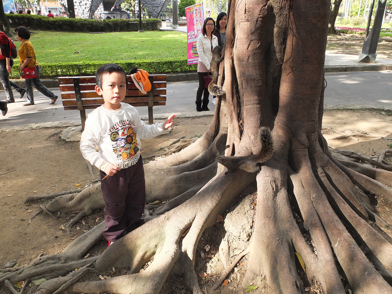 一位阿公準備很多竹子還有水果、花生,讓每位小朋友餵食松鼠。