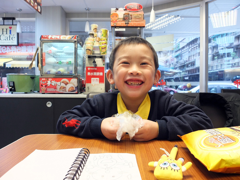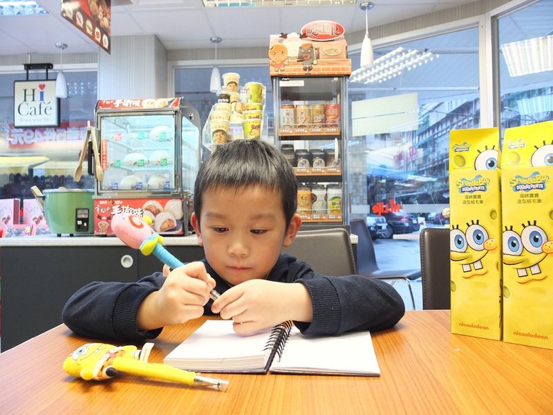 海綿寶寶!配上外頭的大雨,整個就是聒噪。