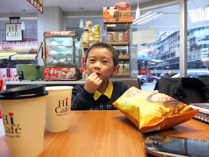 當我運動結束後,你也差不多起床了。我牽著你準備到外頭找東西吃~
