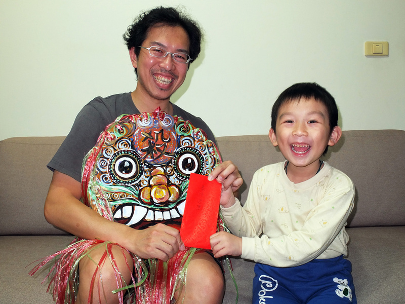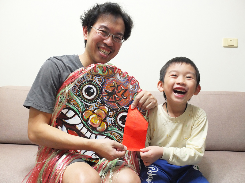 有的小朋友的家長很忙,所以他沒有獅頭,不過老師有借他一個獅頭。