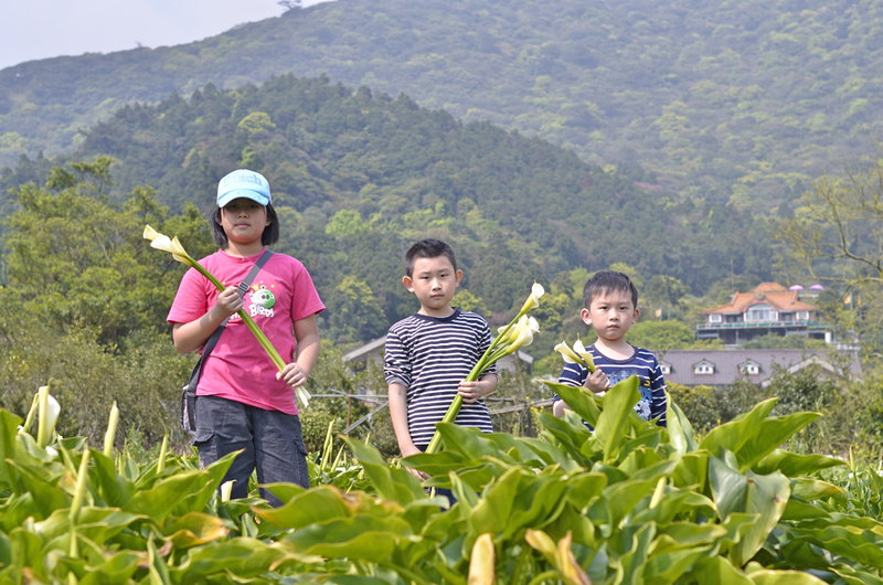 姊姊是第一次來採海芋,你和小雞哥哥就教教她。