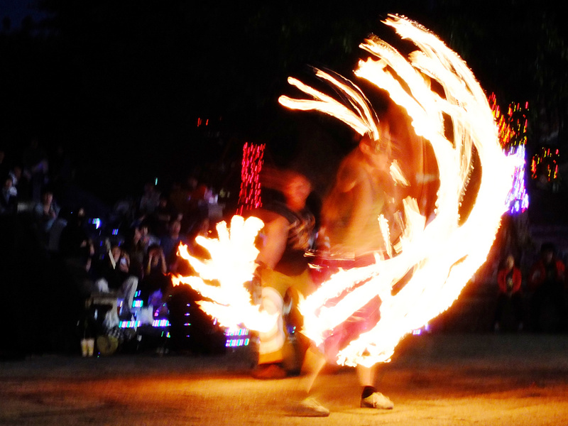 羅東夜市公園廣場前的街頭藝人表演。看起來有點可怕⋯⋯