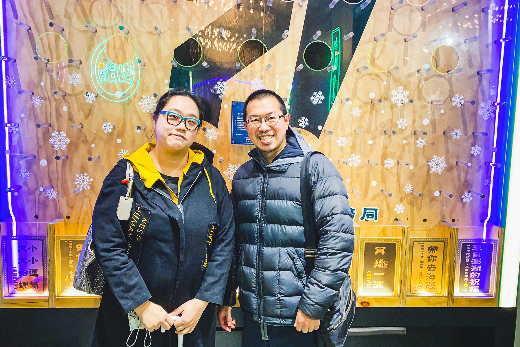 霓虹燈超閃,打在食物或是臉上,顏色都變得好奇怪。