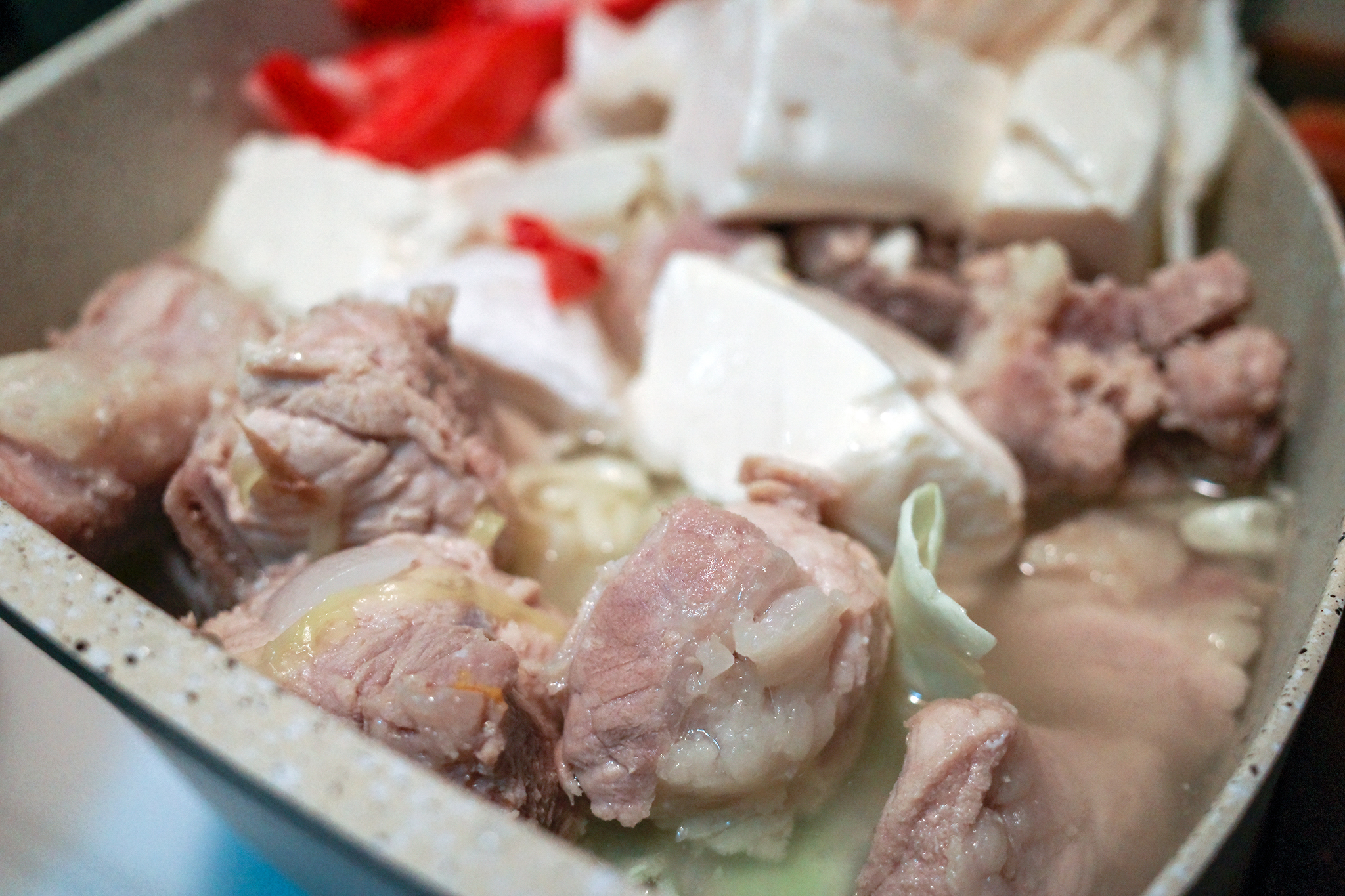 小排放進電鍋蒸,最後把高湯倒出。這樣白湯就有了~