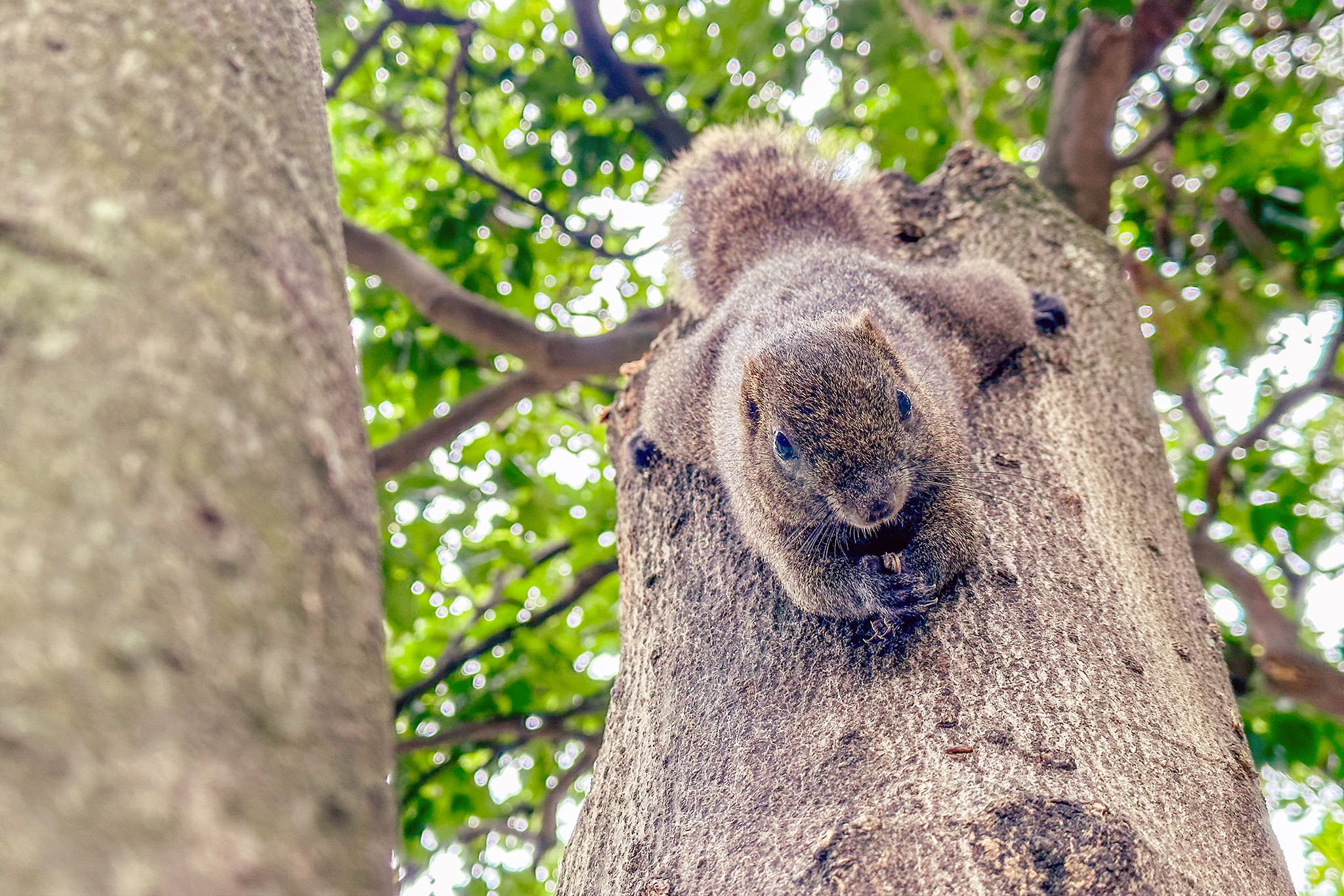 今天松鼠不少,但獨你最乖。一棵樹跳過一棵樹跟著我到池邊。讓你吃飽一點⋯⋯